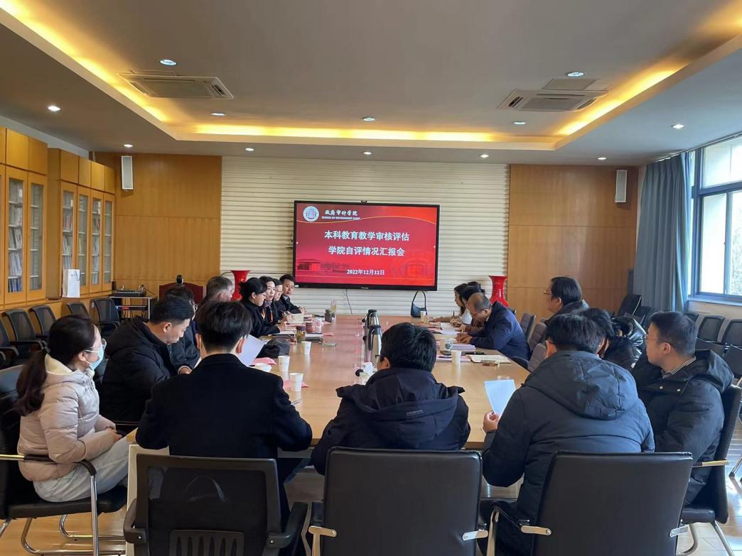 12月12日上午,伟德国际1946官网在敏行四楼会议室召开本科教育教学审核评估自评情况汇报会。伟德bv1946官网副校长陈骏、教务处处长苍玉权、副处长陈婕出席会议。伟德国际1946官网和内部审计学院党政班子成员、系主任、课程组长以及教务办工作人员参加会议。会议由伟德国际1946官网执行院长王士红主持。